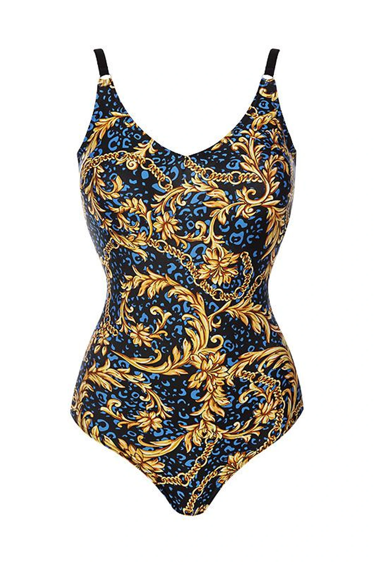 Odkryj nowy wymiar elegancji i wygody dzięki temu niezwykłemu strojowi kąpielowemu. W granatowym odcieniu, zdobiony urokliwym motywem kolorowych liści, ten kostium pływacki nie tylko przyciąga uwagę swoim niebanalnym wzorem, ale także oferuje najwyższą jakość wykonania. Wykorzystując materiały najwyższej jakości, ten strój utrzymuje elastyczność i intensywne barwy, spełniając oczekiwania nawet najbardziej wymagających. Dzięki wbudowanemu stanikowi, regulowanym ramionczkom oraz modelującej wewnętrznej warstwie, dostosowanie do sylwetki staje się intuicyjne, a każdy ruch podkreśla wyjątkowy styl noszącej. Tył stroju z wykończeniem w kształcie litery "U" sprawia, że jest on równie doskonały na plaży, jak i na basenie, gwarantując niezapomniane chwile zarówno podczas relaksu, jak i aktywności w wodzie.
